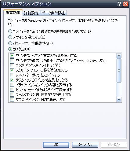 それでもノーマル設定のままだとXPがもっさりするんですよね~ボロPCなんで^^;